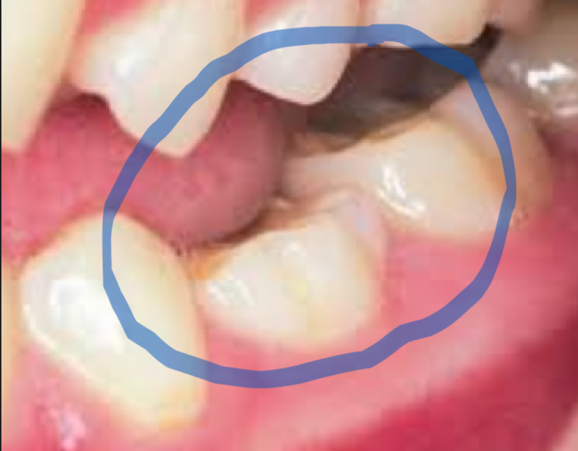 På billedet kan man se eks. af en ankyloserede tand, som sidder lavere end de andre. Det skyldes den stærke forbindelse mellem tanden og kæbeknoglen.